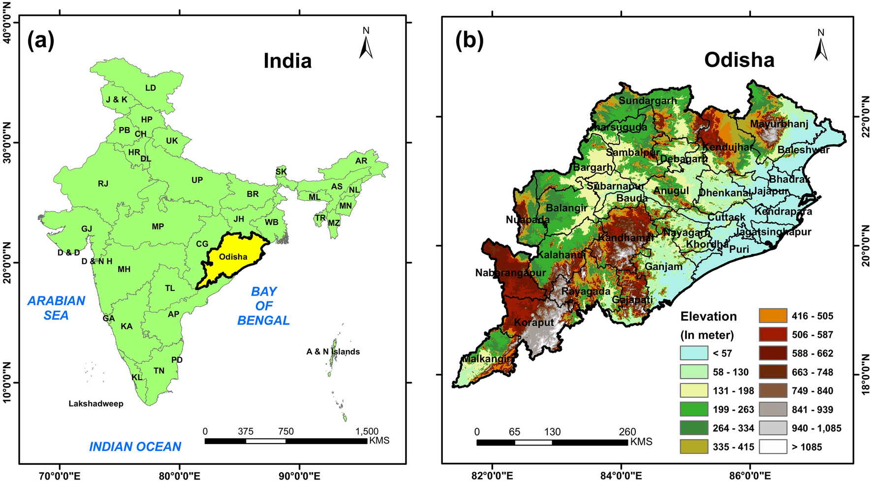 Map of Odisha with district boundaries | Download Scientific Diagram